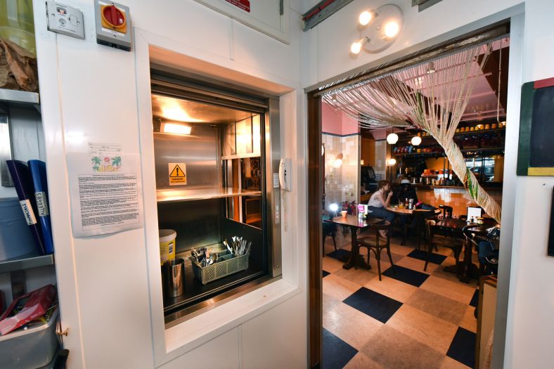 The Microlift 100B provides a very large, extra pair of hands, discreetly supporting kitchen and waiting staff in shifting food and tableware between the ground-floor diner and lower-ground kitchen and bar. The adjacent entry door configuration allows for subtle movement of items, away from the eyes of The Breakfast Club customers.