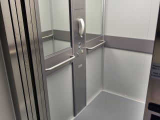 In keeping with its discreet profile, the lift sports a grey vinyl skin plate aesthetic, with a half height side wall mirror to maximise the cabin interior.